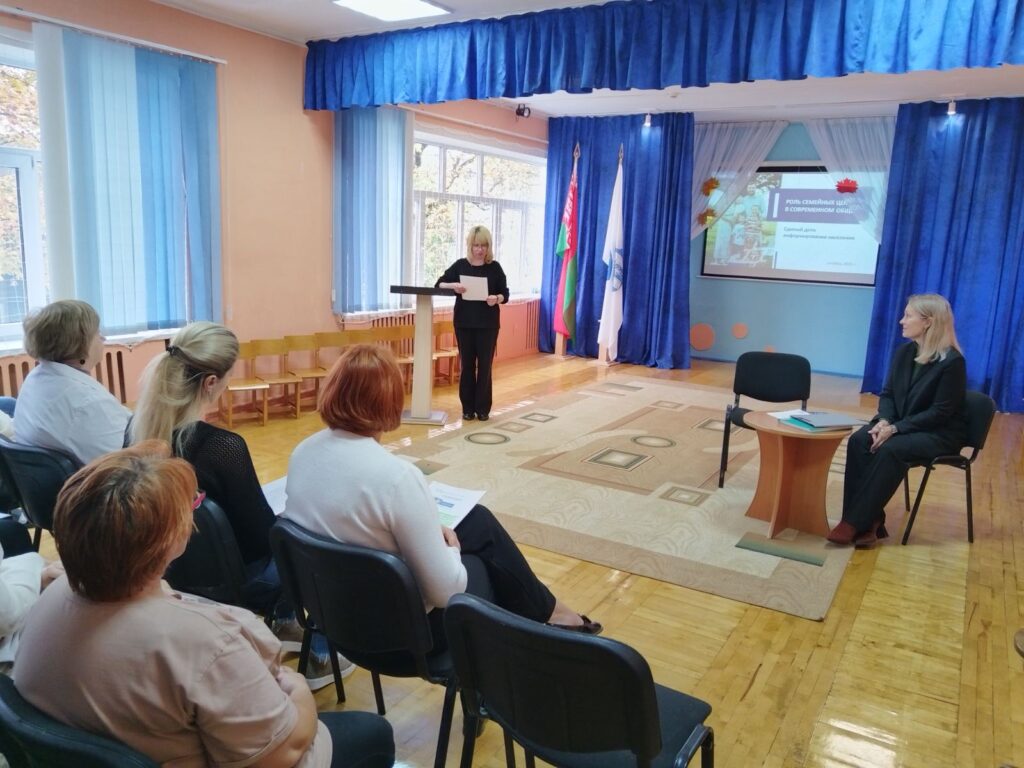 16.10.2025 года в нашем учреждении дошкольного образования состоялась встреча с трудовым коллективом в рамках Единого дня информирования. На встрече с коллективом детского сада присутствовала Кшесинская Екатерина Ивановна, председатель правления, начальник сектора идеологической работы и по делам молодежи Администрации Ленинского района г.Могилева