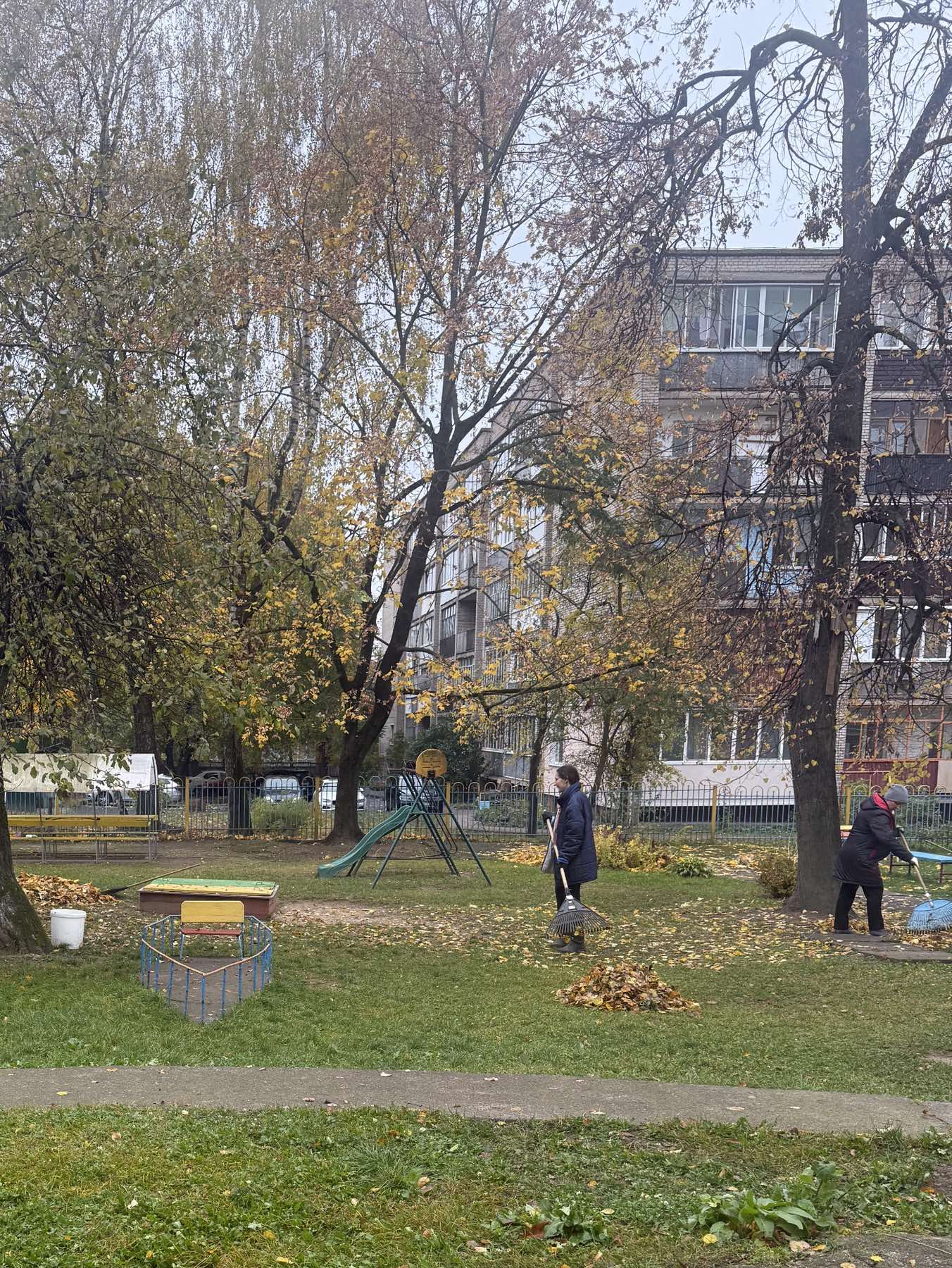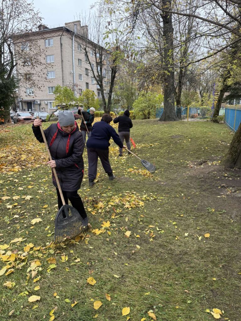 Сотрудники детского сада, вооружившись необходимым инвентарём, с энтузиазмом приводили в порядок территорию детского сада. Собирали мусор, сгребали листву и траву, привели в порядок клумбы. Совместными усилиями территория заметно преобразилась.