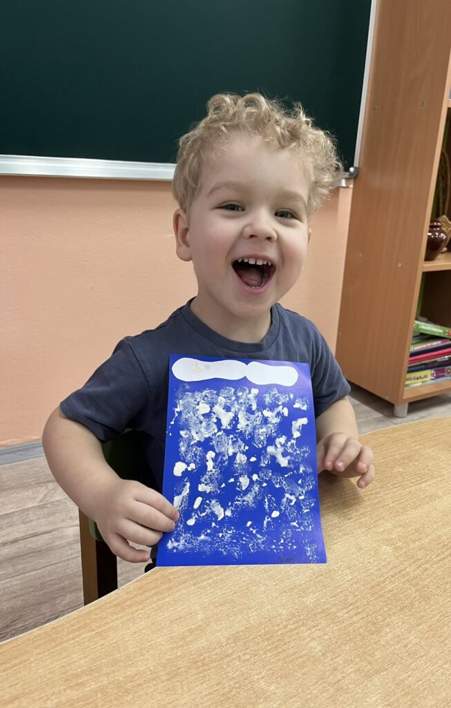 В группе «Веселые Гномики» прошло занимательное занятие по образовательной области «Изобразительное искусство» на тему «Снег идет». Дети развивали мелкую моторику рук, формировали умение рисовать разными способами (пальцами, тычком), равномерно заполнять лист снежинками. В процессе занятия дети были в эмоционально-положительном настроении, у всех малышей получились замечательные работы, которые были выставлены на выставку, что, безусловно, доставило радость и детям, и взрослым.