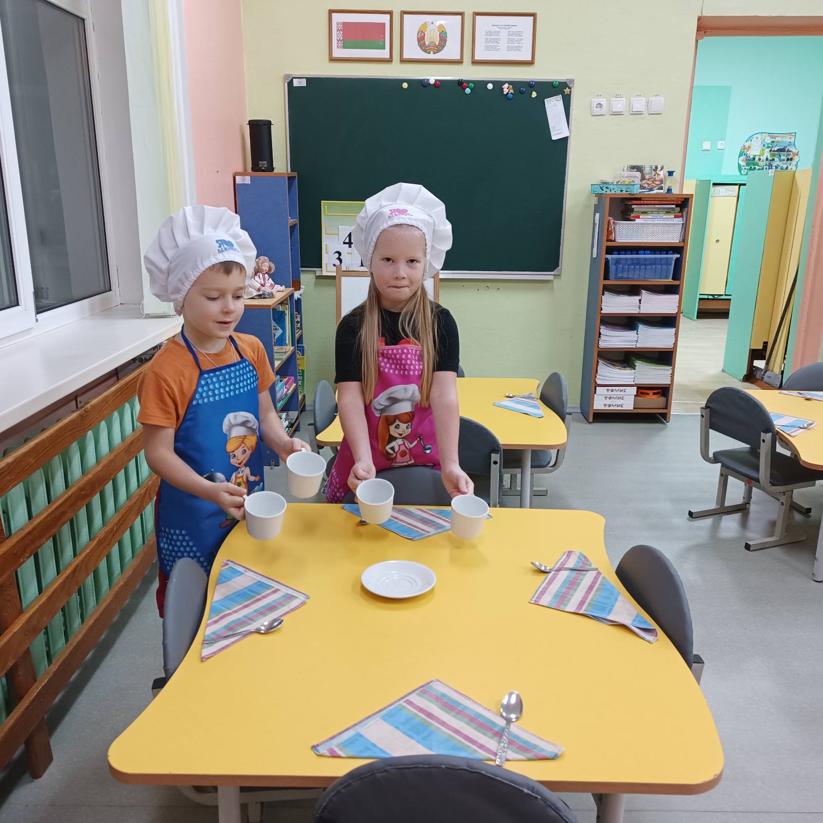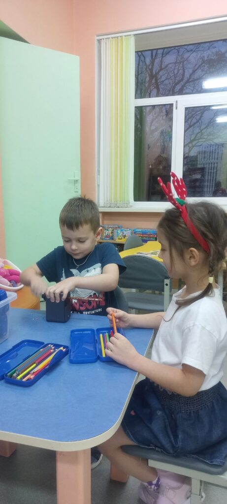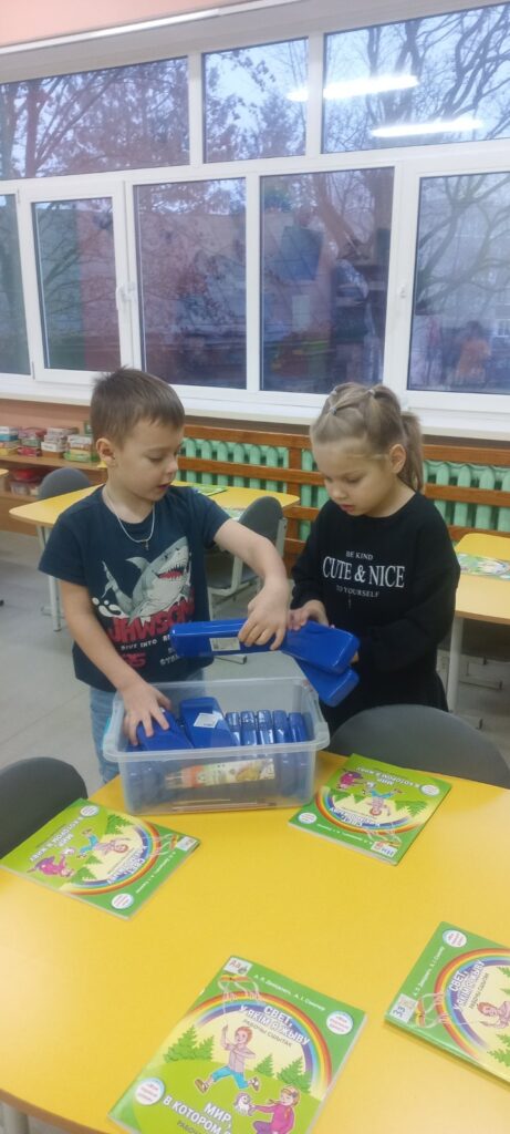 Дежурные по занятиям аккуратно раскладывают рабочие тетради и пеналы. Если возникает необходимость заточить карандаши, дети с удовольствием берут на себя и эту работу.